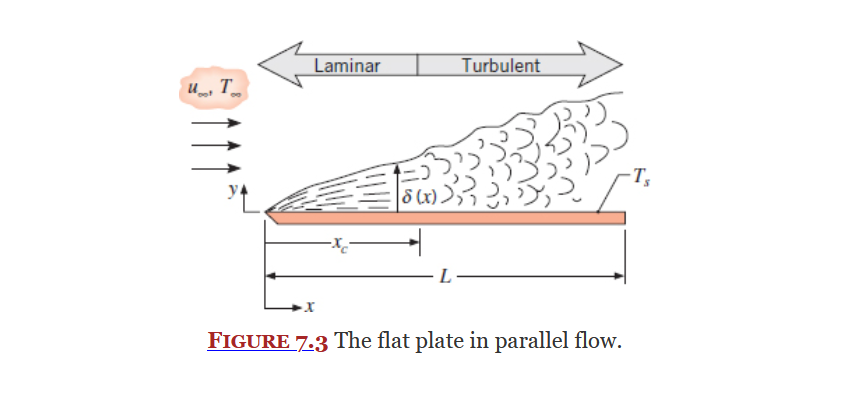Section 7.2 covers a the convection associated with an isothermal flat plate exposed to flow on one side as shown in the below image.